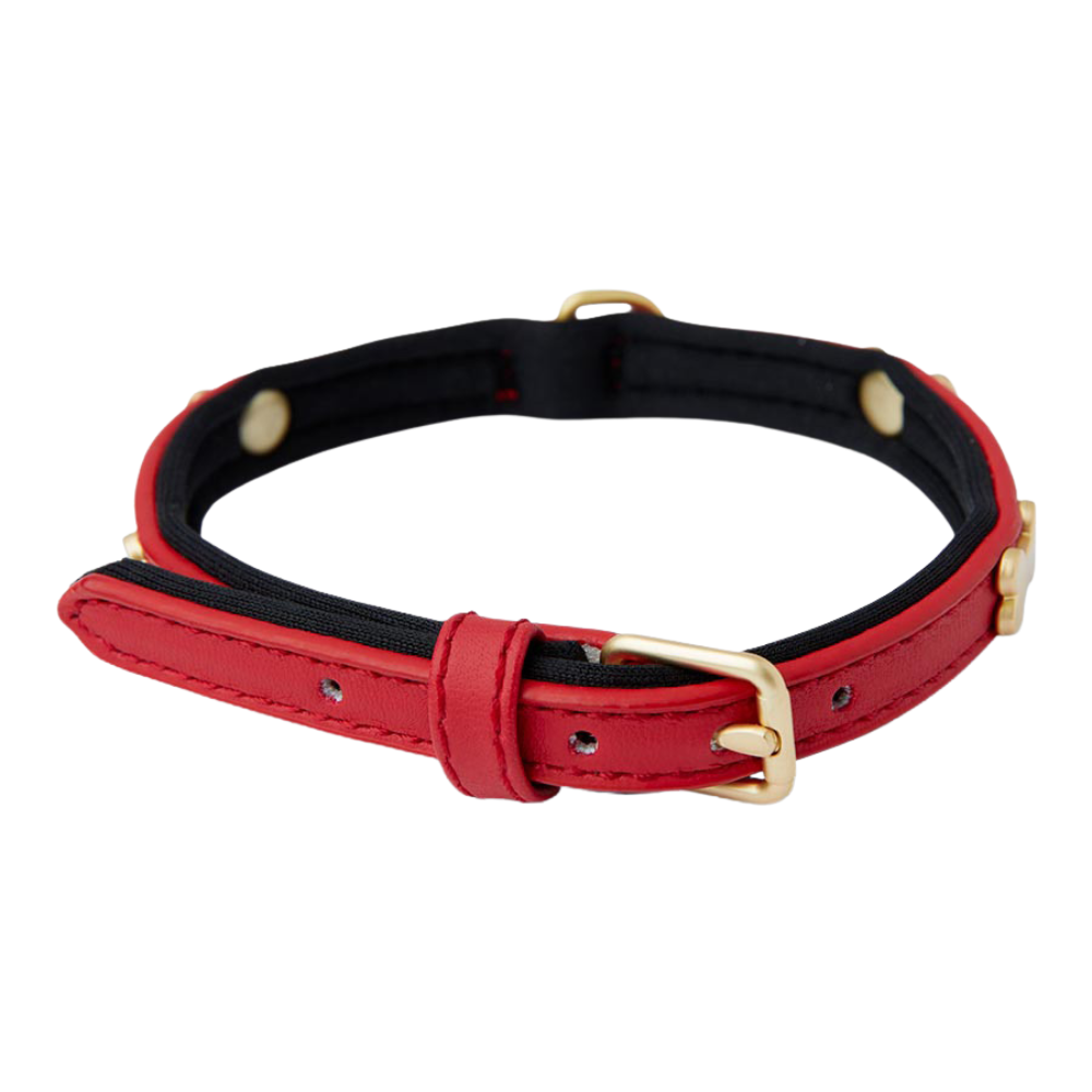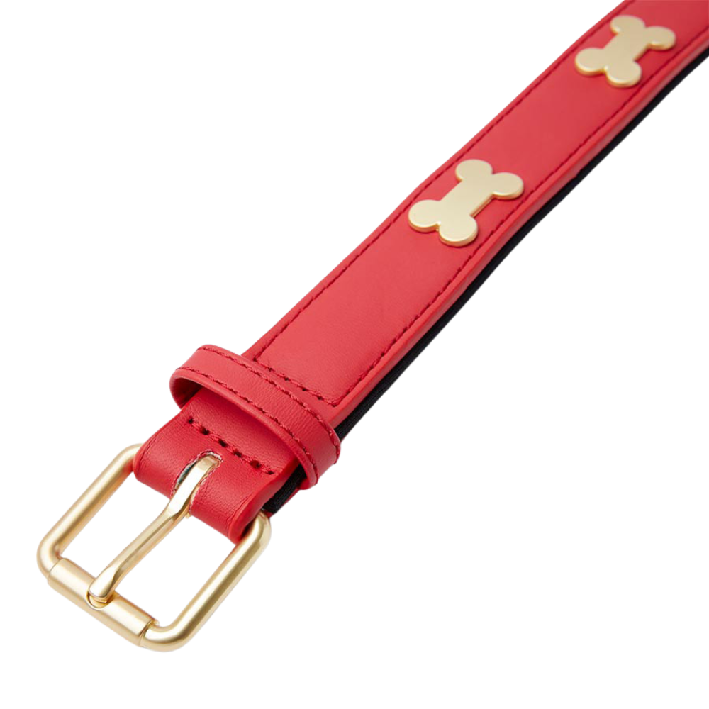Designed with a bold red finish and clean structure, this Pawpverse leather collar delivers a refined everyday look. The smooth outer layer is paired with a soft inner lining for comfortable wear, while the gold-tone buckle and hardware add a polished touch. Built for durability and easy adjustment, it’s suited for daily walks and routine use.